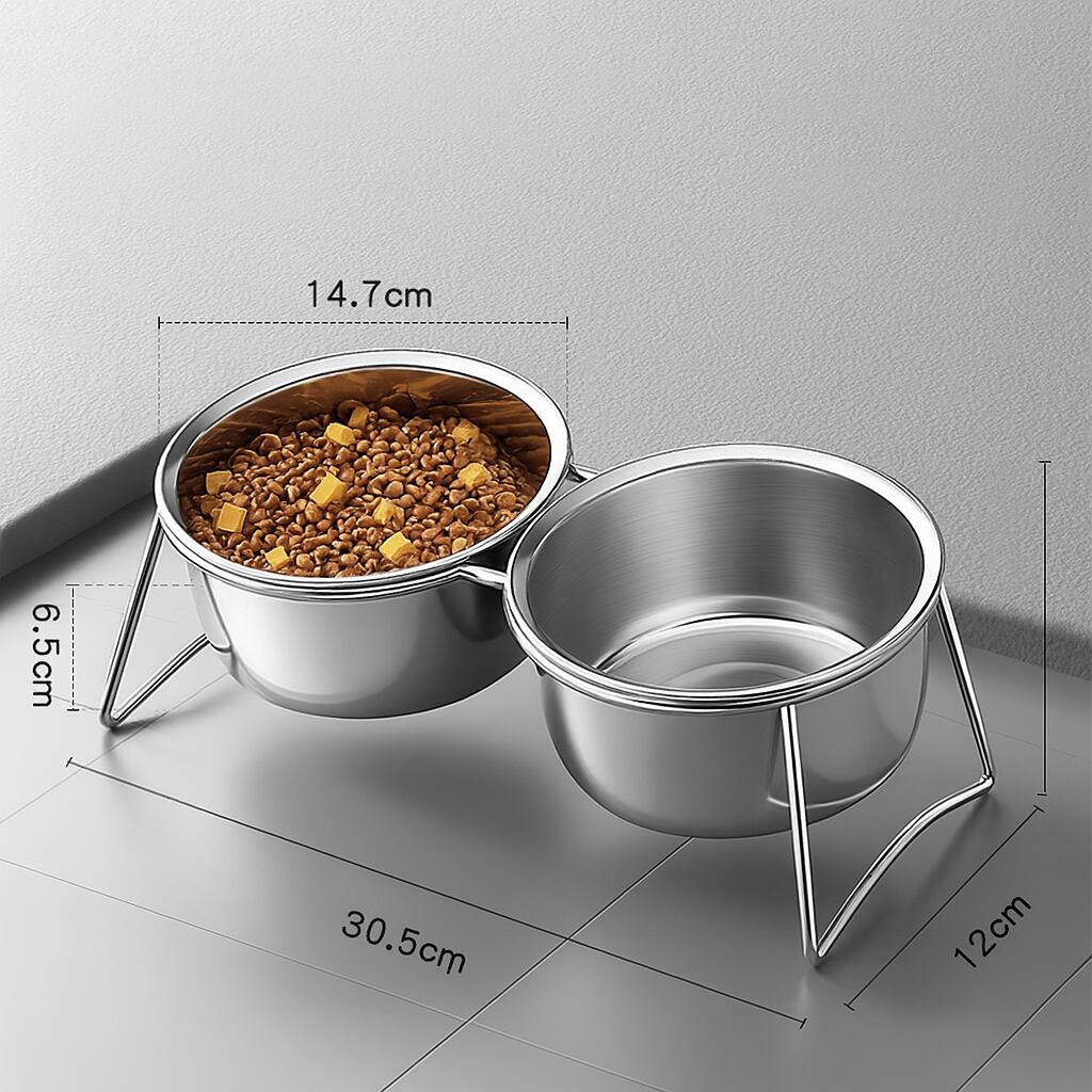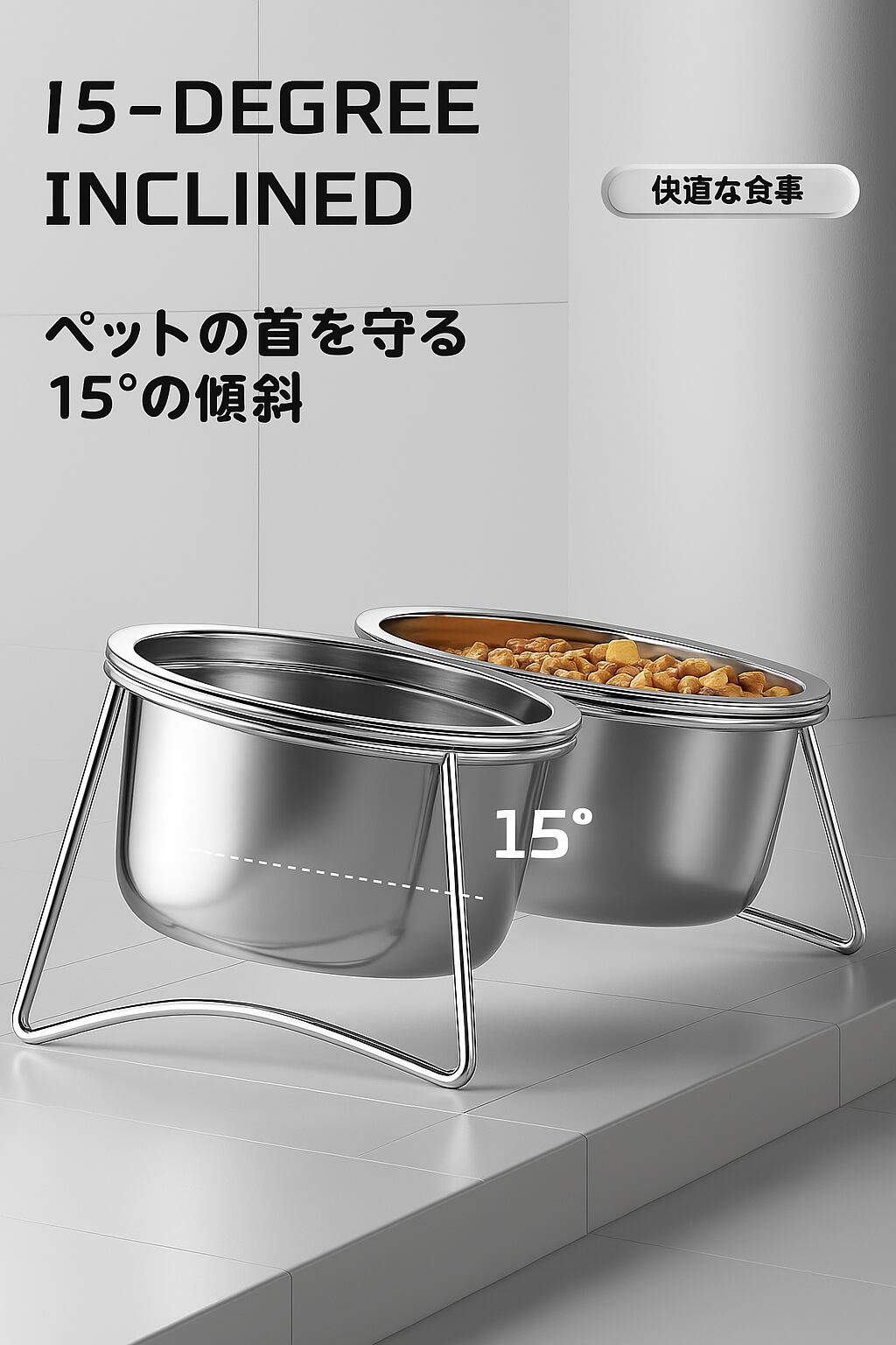ペットの健康を考えた、15度傾斜設計のステンレス製フードボウルセットです